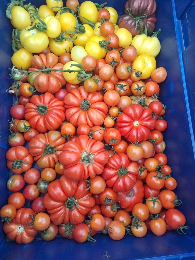 We’ve been picking…squashes, salads from the hydroponics, kohl rabi, brassicas, radish, tomatillos, chicory, beans, parsley, basil, chillies, crab apples, and the tomatoes that just keep on coming!