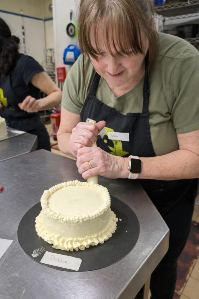 Everyone started with a simple buttercream cake and the chance to try something new. For some, it was their first time using a piping bag, while others were building on skills they already had.