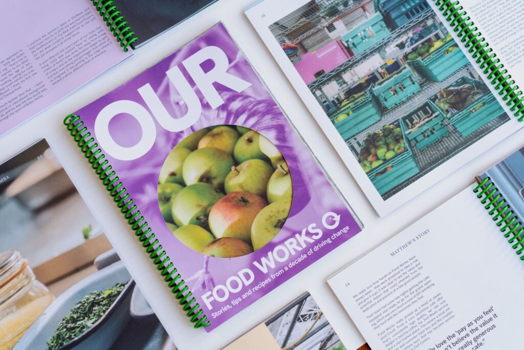 Get your own copy of the Food Works cookbook – a vibrant collection of recipes, stories, and insights from our community kitchen. It’s more than just a cookbook; it’s a celebration of the people, food, and values that shape our mission to make good food accessible to all.